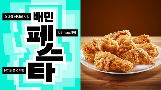 행사의 중심은 ‘100원딜’이다. 배민은 오는 3월 2일부터 4주 동안 매일 2000명을 추첨해 인기 치킨 브랜드를 100원에 주문할 수 있는 쿠폰을 제공한다. 평소 2만 원 안팎인 메뉴를 100원에 구매할 수 있어 참여 경쟁이 치열할 것으로 보인다.