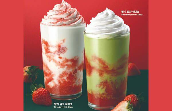 SPC그룹 파스쿠찌는 딸기를 활용한 시즌 음료 4종을 출시했다. 베리 돌체 스트로베리를 콘셉트로 제철 과일인 딸기의 달콤한 맛을 강조한 메뉴들이다. 돌체는 이탈리아어로 ‘부드러운, 달콤한’이라는 뜻을 가지고 있다. 대표 메뉴로 꼽을 수 있는 것은 올해 처음 선뵈는 ‘딸기 말차 쉐이크’로, 프리미엄 블렌디드 티 브랜드 티트라의 말차와 제철 딸기가 조화롭게 어우러진 음료다. 가격은 7,100원이다.