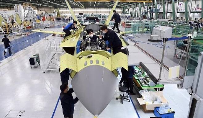 한국항공우주산업(KAI)은 KF-21 보라매 전투기의 자동화 생산라인에서 12대를 동시에 제작하는 생산 체계를 구축했다.