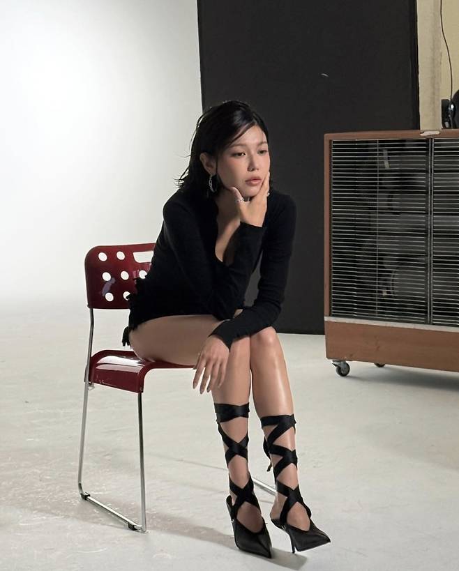특히 길게 늘어뜨린 체인 목걸이는 미니멀한 룩에 강렬한 디테일을 더하며 도발적이면서도 유니크한 분위기를 자아냈습니다.