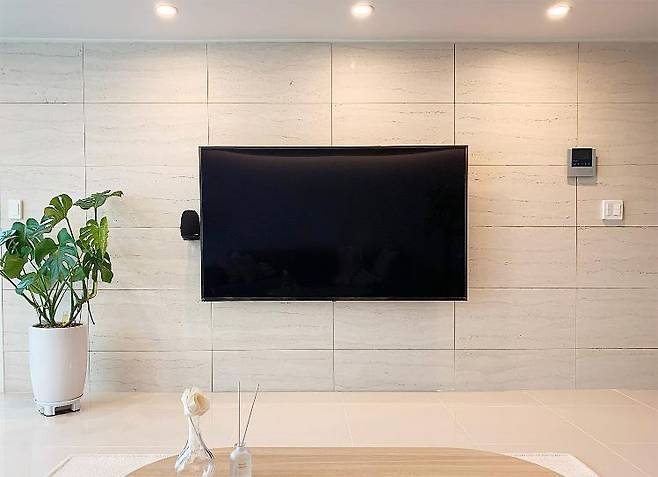 TV는 거실장 없이 벽걸이로 걸었더니 깔끔해 보여서 만족입니다.