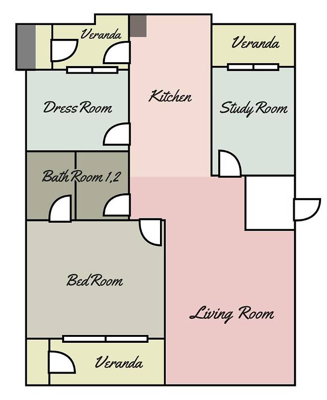 전형적인 30평대 오래된 아파트 구조여서 거실과 안방은 넓고, 부엌이 길고 좁은 구조입니다.