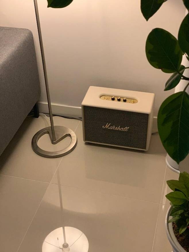 거실 한편에는 마샬 스피커를 놨는데 무난하게 인테리어와 잘 어울리고 음향도 좋아서 잘 쓰고 있습니다.