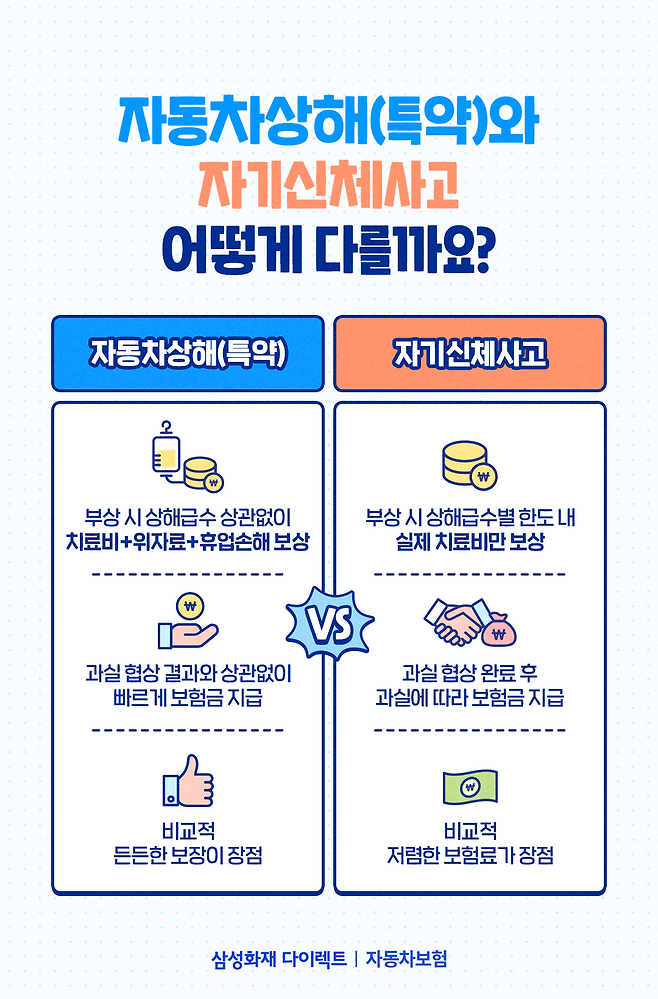 #1. 자동차상해(특약)와 자기신체사고, 무슨 차이가 있을까요?