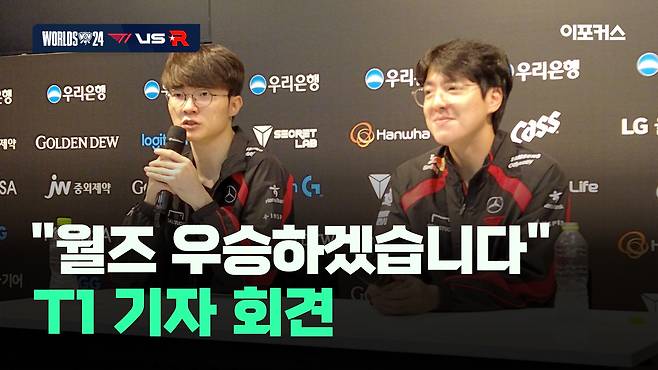 경기후 T1 김정균 감독-'페이커' 이상혁 선수가 승리팀 기자회견을 진행했습니다.