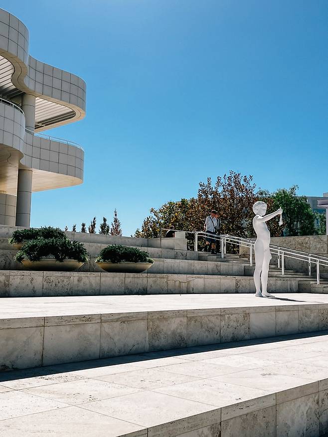 마지막 미술관은 게티 센터였다. 오전 반나절이면 될 듯했고, 산타모니카 해변에서 점심을 먹고 베니스 해변에서 일몰을 볼 계획이었다. 게티 센터에서 한나절을 다 보내기 전까지는. 게티 드라이브의 초입에서 트램을 타고 몇 분 정도 올라가야 하는데, 넓은 창문 밖으로 태평양과 맞닿은 도시 외곽의 광활한 풍경이 내려다보였다. '땅의 끝(Land's end)'이라는 말이 주는 아스라한 낭만이 여기 게티 센터에 있었다. 계단 한가운데 놓인 찰스 레이의 조각 작품 〈개구리를 든 소년〉을 지나 동서남북으로 뻗은 건축물과 정원으로 접어들었다.