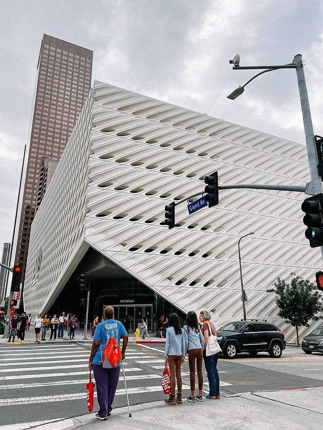 더 브로드는 다운타운에 있는 신생 현대미술관이다. 자선 사업가이자 예술 컬렉터인 일라이와 에디스 브로드 부부의 이름에서 따왔다고 한다. 벌집 모양(Honeycomb)을 형상화했다는데, 바로 옆 월트 디즈니 콘서트 홀 못지않게 빼어난 건축물이다.