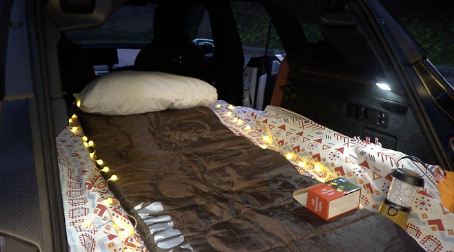이렇게 나의 첫 차박이 완성됐다. 혼자만의 공간이라는게 무척 매력이었다. 한번 해보니 다른 차로 다른 곳도 가고 싶다는 욕심이 생긴다.