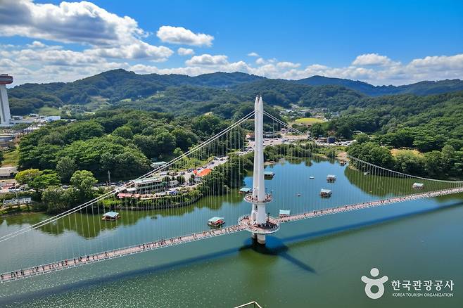 예당호의 대표 명소인 출렁다리도 바로 옆에 있어 함께 즐길 수 있다. 길이 402m, 국내 최장 규모를 자랑하는 이 다리는 연간 100만 명 이상이 방문하는 예산 대표 관광지다.