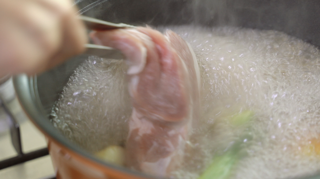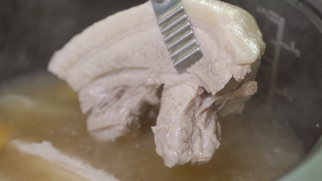 돼지고기를 계속 육수에 담아 놓으면 고기가 흐물거릴 수 있어 다 익었다면 고기를 빼서 보관해 주세요.