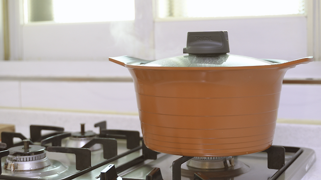 5분이 지나면 '중불'로 바꾸고 30~40분 동안 끓여 주시면 돼요.