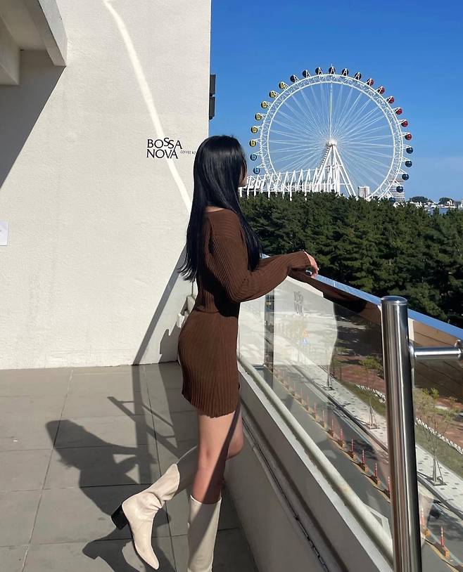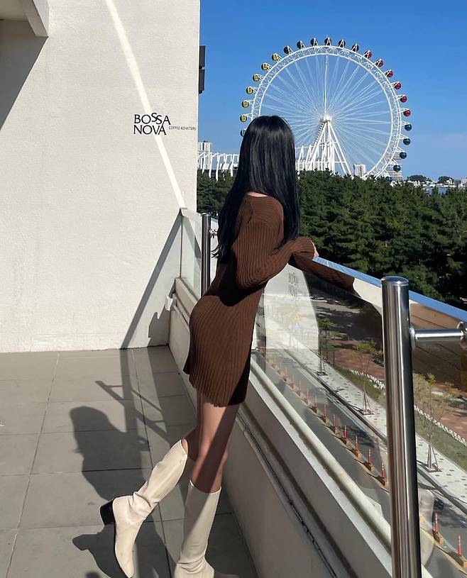 롱부츠 특유의 존재감이 다리를 길어 보이게 하고,