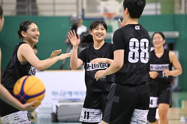24일 부천체육관에서 열린 ‘2025 하나은행 WKBL 3x3 트리플잼(Triple Jam)’ 1차 대회. 이번 대회에는 WKBL 6개 구단을 비롯해 이소정, 박시은, 박은서, 김두나랑으로 구성된 한솔레미콘과 이윤미, 송윤하(이상 KB스타즈), 허유정, 김채은(이상 신한은행)이 버티고 있는 W-유나이티드가 참가했다. 8팀은 4팀씩 2개조로 나뉘어 풀 리그 방식으로 조별예선을 치렀다.