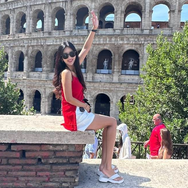 배우 박솔미가 이탈리아 로마의 대표 랜드마크 콜로세움을 배경으로 여유로운 미소를 지으며 한 폭의 화보 같은 여행 일상을 공개해 시선을 사로잡았습니다.