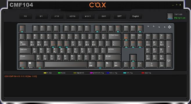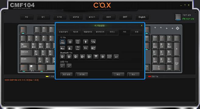 그리고 전용 소프트웨어를 설치하면 다양한 설정이 가능해 지는데요. 메인화면의 경우 기본키 설정 및 FN 조합키 설정이 가능합니다. 원하는 키를 선택후 메뉴를 선택하고 적용하는 방식입니다. 하단부에 설정 값 및 설명을 확인할 수 있어서 사용하는데 큰 어려움이 없습니다.