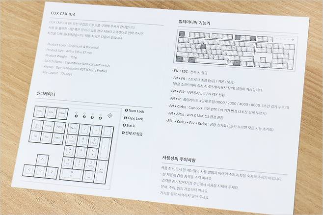 이처럼 COX CMF104 8K 무접점 키보드 55g는 조용하면서도 분별력있는 타건감과 안정된 내구성이 느껴지는 설계 다양한 기능으로 사무용 사용은 물론 게이밍으로도 적합한 제품이 아닐까 싶습니다. RGB 라이팅은 존재하지 않기 때문에 화려한 감성은 없지만 전반적으로 기본기가 확실하고 고품질이 느껴지는 무접점 키보드였습니다. 35g / 45g / 55g 모델 별로 차이가 있으니 조용하고 가볍게 눌러지면서도 묵직하면서도 견고한 타건감을 원하는 유저라면 55g 모델을 추천드립니다.