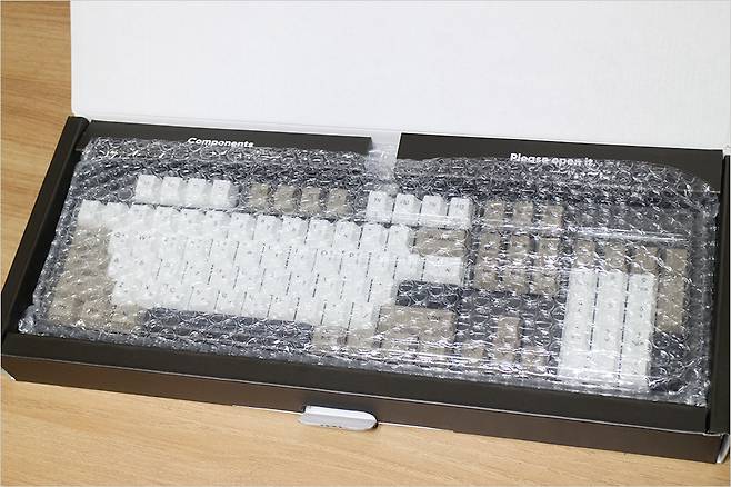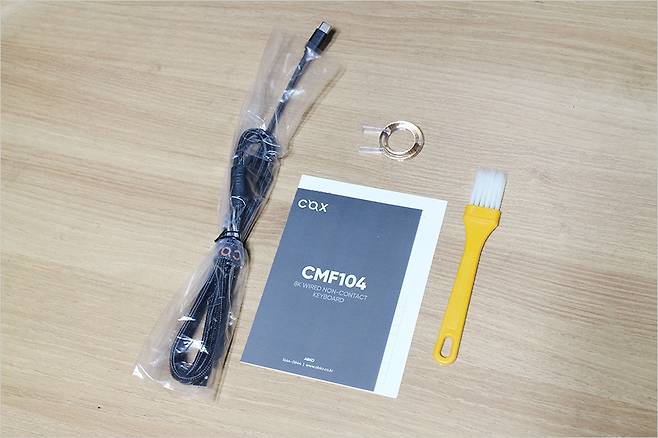 포장은 굉장히 안정적인 느낌입니다. 플라스틱 투명 커버와 함께 뽁뽁이 포장까지 되어 있습니다. 구성품으로는 먼지 털이 및 키캡 리무버 그리고 메뉴얼 및 케이블이 들어있습니다. 케이블은 선꼬임 방지 처리가 되어있고 1.8m 길이를 가지고 있어 케이블 꼬임 스트레스 없이 사용할 수 있습니다. 메뉴얼에는 여러 기능들이 소개되어 있습니다. (1000-8000Hz 폴링률 변경, 스토로크 조절, 무한 동시입력 기능 등)