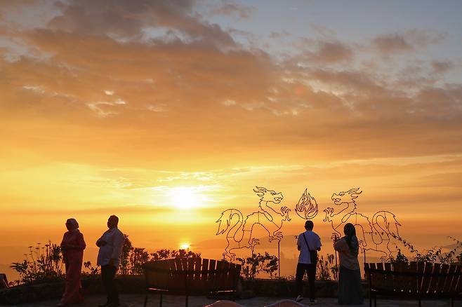 호텔에서 잠시 휴식을 취한 후 다음 여정지로 향하기 위해 가이드 필립을 만났다. 필립은 코타키나발루에 온 지 12년이 됐다고 했다. “코타키나발루의 매력이요? 때 묻지 않은 자연이죠. 코로 깊이 숨을 들이마셔보세요. 공기가 정말 깨끗하단 걸 느끼실 수 있을 거예요.” 30분만 나가도 대자연이 펼쳐지는 이곳에서 그는 매주 캠핑을 즐긴다. 얼마 전에는 운전하며 캠핑하러 가는 길에 도로에서 피그미코끼리와 마주쳤다고. 해발 약 4천95미터, 동남아시아에서 가장 높은 산인 키나발루산은 현지인들이 조상의 영혼이 머무르는 신성한 안식처라고 믿어온 곳. 1천600여 종의 자생식물과 긴꼬리원숭이, 보르네오섬에서만 사는 코주부원숭이, 피그미코끼리, 오랑우탄, 바다악어 등 다양한 야생동물이 서식한다. 아쉽게도 이번 일정에 키나발루산 트레킹은 빠졌다. 아쉬운 마음은 시내에서 한 시간 거리의 코콜힐(Kokol Hill)에 가는 것으로 대신하기로 한다. 코콜(Kokol)은 말레이어로 ‘구불구불’이란 뜻. 시내에서 한 시간 정도 차를 타고 이름처럼 구불구불한 산길을 오르면 해발 800미터 정상인 코콜힐에 다다른다. 고도가 높지만 차량이 다닐 수 있게 길이 잘 닦여 있다. 정상에 이르니 기온이 낮아 시원하고, 무엇보다 공기가 맑아 코가 뻥 뚫리는 것 같았다. 코콜힐은 코타키나발루 시내가 한눈에 들어오고 수평선 너머로 붉게 물드는 석양이 한눈에 바라보이는 일몰 명소다. 최근에는 정상까지 올라가는 구불구불한 길가에 여행자를 위한 크고 작은 카페가 많이 생겼다. 그중에서도 여행객들이 많이 찾는 곳은 코콜 헤이븐 리조트다. 겹겹이 포개진 산과 드넓은 바다, 그 사이에 점점이 박힌 섬까지, 파노라마로 펼쳐지는 풍광에 구름 위로 물드는 드라마틱한 석양과 바다로 떨어지는 붉은 해를 바라보면 감탄이 절로 나온다. 리조트 곳곳에 다양한 조형물이 많아 인생 사진을 남기기에도 좋다.