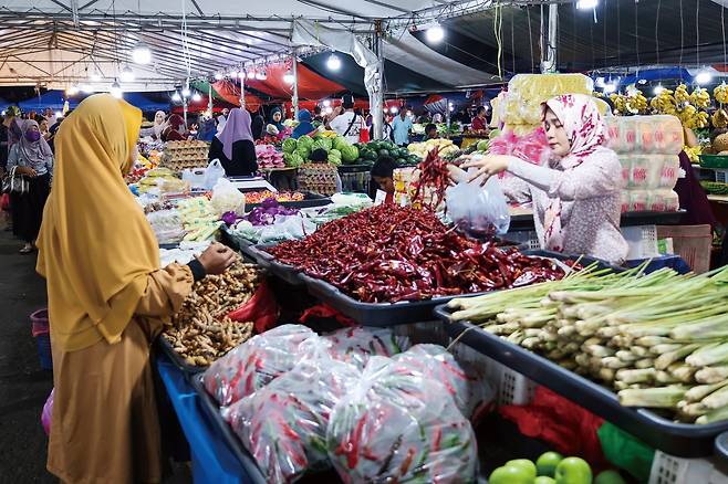현지인의 일상에 스며들기에 시장만큼 좋은 곳도 없다. 특히 동남아시아 여행지에서 한국에서 자주 먹지 못하는 열대 과일을 마음껏 먹기 위해 재래시장은 필수 코스다. 호텔에서 걸어서 갈 수 있는 거리에 마켓이 위치해 있었다. KK 워터프런트 북쪽에서 수공예품 시장 뒤쪽을 지나 중앙시장 전까지 이어지는 시장이 필리피노 마켓이다. 코타키나발루에 이주한 필리핀 사람들을 중심으로 열리던 작은 시장이 현지인까지 모여들며 점점 규모가 커졌다. 채소, 과일, 건어물과 현지인들이 식사를 하며 맥주 한잔을 마시는 노점까지, 맛있는 냄새와 흥겨운 열기가 가득하다. “싸다 싸~” 유창한 한국어로 호객하는 과일가게 청년에게서 사바 지역에서만 맛볼 수 있는 ‘밤방안’이라는 야생 망고와 망고스틴을 샀다. 과일을 안주 삼아 워터프런트에서 맥주 한잔 마시며 하루를 마무리한다.