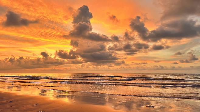 비가 내렸는데도 오후 6시가 넘자 구름을 머금은 하늘이 온통 짙은 주홍빛으로 물들기 시작한다. 뉘엿뉘엿 바다로 빠지는 붉은 태양을 따라 한 아이가 파도를 향해 달려간다. 비눗방울 놀이를 하는 아이들 틈에 섞여 낭만적인 선셋 타임을 즐긴다. 문득 왜 이곳이 세계 3대 석양 명소에 꼽혔는지 이해가 가기 시작한다. 날씨가 좋든 나쁘든 코타키나발루의 일몰은 평균 이상의 아름다움을 선사한다.