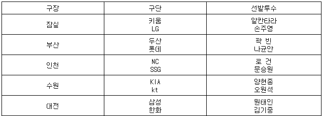 [프로야구] 31일 선발투수