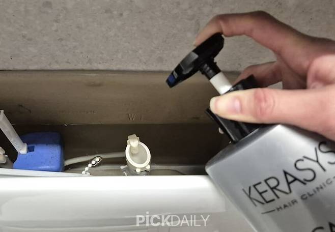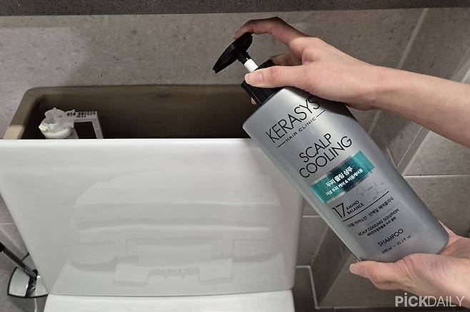가장 의외의 활용법입니다. 변기 뚜껑을 열고 물탱크 안에 샴푸를 서너 방울 떨어뜨려두세요. 물을 내릴 때마다 샴푸 성분이 조금씩 섞여 나오면서 변기 안쪽 벽면을 코팅하듯 닦아줍니다.