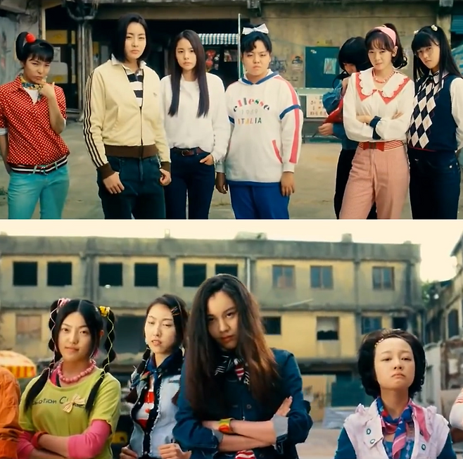 신창여상의 멤버들로 이루어진 '소녀시대'는 어쩐지 수더분한 '써니' 팀의 멤버들과는 달리 한껏 치장한 모습으로 일진 포스를 자랑한다. 특히나 한껏 올린 부풀린 머리가 인상적인 이 소녀.
