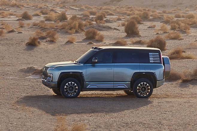 외관 디자인은 랜드로버 '디펜더'를 연상시키는 박시한 스타일로 전면부 그릴 조명과 합쳐진 LED 헤드램프 및 툭 튀어 나온 사다리꼴 펜더, 20인치 알로이 휠, 플러시 도어핸들, 분할형 LED 테일램프 등으로 구성됐다.