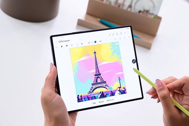 삼성전자가 갤럭시 S24부터 본격적으로 스마트폰에 AI 기능을 탑재하기 시작해 폴더 6에서도 최신 갤럭시 AI의 다양한 기능도 활용할 수 있다. 특히 폴드6의 대화면에 특화된 갤럭시 AI를 사용할 수 있는데 바로 '스케치 변환’ 기능이다. 폴드6에 간단한 스케치를 그리면 AI는 스케치에 기반해 이미지를 완성해준다. 또한, 구글 제미나이 앱이 탑재돼 정보 습득 뿐만 아니라 글쓰기, 계획 세우기 등 다양한 도움을 받을 수 있다.