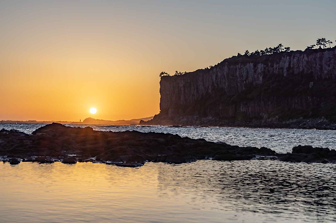 박수기정은 사계절 중에서도 일몰이 가장 아름다운 곳으로 손꼽힙니다. 특히 요즘처럼 해가 빨리 기우는 계절에는 붉은 노을이 절벽과 바다 사이를 천천히 물들이며, 하루의 끝을 깊고 조용하게 마무리해 줍니다. 주황빛 하늘, 검붉게 물든 절벽 실루엣, 그리고 잔잔히 반짝이는 바다 표면이 겹쳐지면 마치 한 폭의 수채화 속 풍경에 들어온 듯한 느낌이 듭니다.