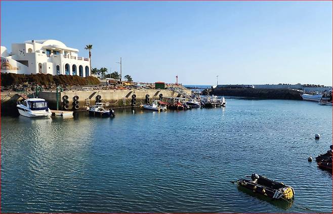 박수기정은 제주 올레길 9코스의 출발점이기도 합니다. 절벽 위 소나무 숲길을 따라 걷다 보면 작은 등대가 서 있는 대평포구가 내려다보이는데, 초겨울의 포구는 여름과 전혀 다른 차분한 표정을 하고 있습니다. 바닷바람에 스치는 파도 소리, 한가롭게 정박한 어선의 실루엣, 그리고 낮게 깔린 하늘까지 모두가 느린 호흡으로 이어집니다.