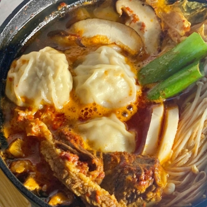 이곳의 대표 메뉴인 만두전골은 정말 푸짐했어요. 알차게 채워진 만두 속에 고소한 육즙이 가득해, 수저를 뜨는 순간 입안 가득 풍미가 퍼진답니다. 여기에 한우와 갖가지 채소, 버섯이 더해져 국물이 한층 깊어진다는 점이 인상적이었어요. 얼큰하면서도 담백한 국물 맛 덕분에 추운 계절이면 더욱 생각나는 메뉴였어요.