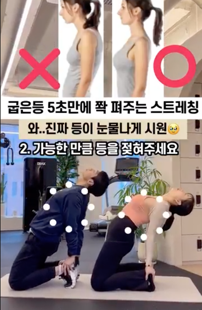 앞에서 말씀드렸듯 호흡도 중요하지만 굽은등을 펴기 위해선 위의 영상 스트레칭도 꼭 해주셔야 합니다.