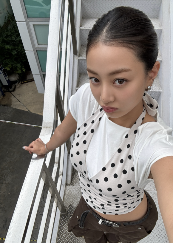 트와이스 지효가 여름 패션으로 선택한 스컬프터의 도트 홀터탑은 화사한 디자인과 실용적인 스타일링이 어우러진 아이템이다.