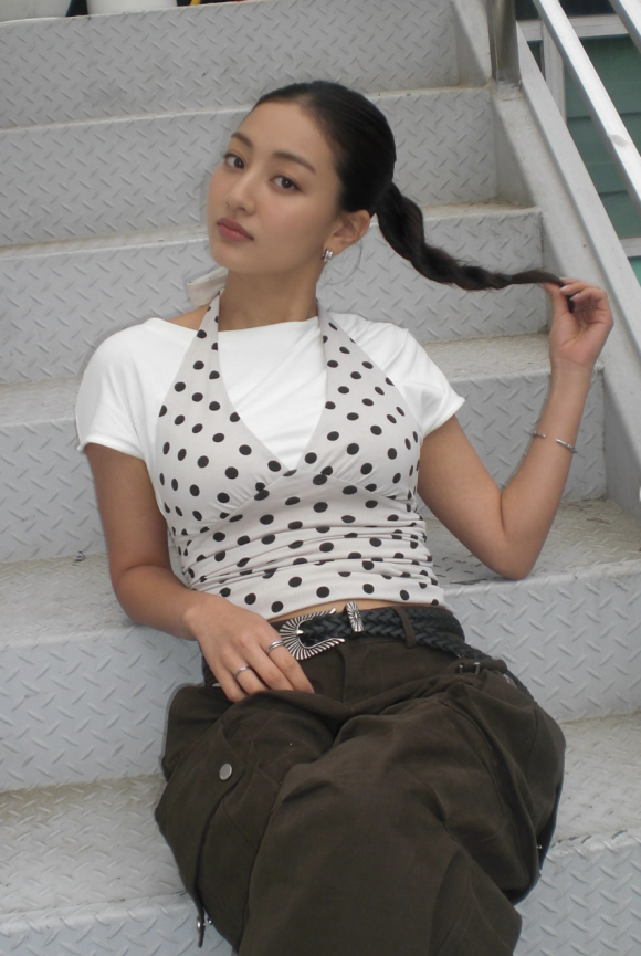 지효가 선택한 제품은 국내 브랜드 스컬프터(SCULPTOR)의 ‘Dot Halter Top Raw’로, 단정한 화이트 티셔츠에 레이어드해도, 단독으로 시원하게 연출해도 스타일리시한 무드를 자아낸다.