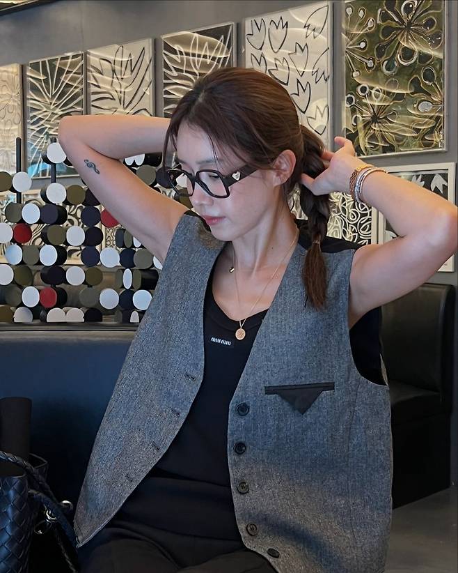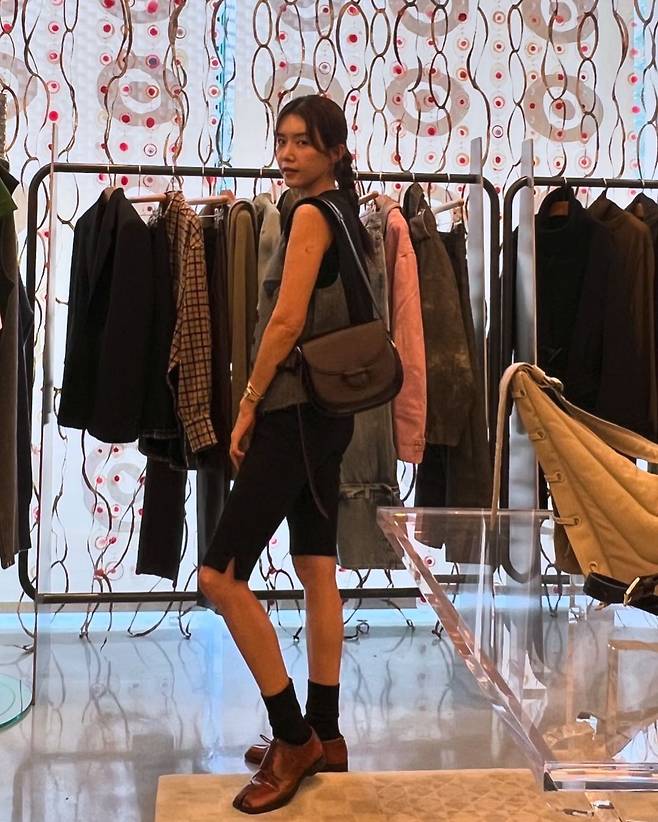 사진 속 채정안은 블랙 탑을 이너로 입고 그레이 베스트와 스키니한 5부 팬츠와 로퍼를 신어 센스있는 캐주얼룩을 선보였다.