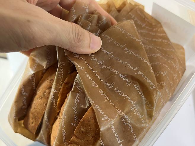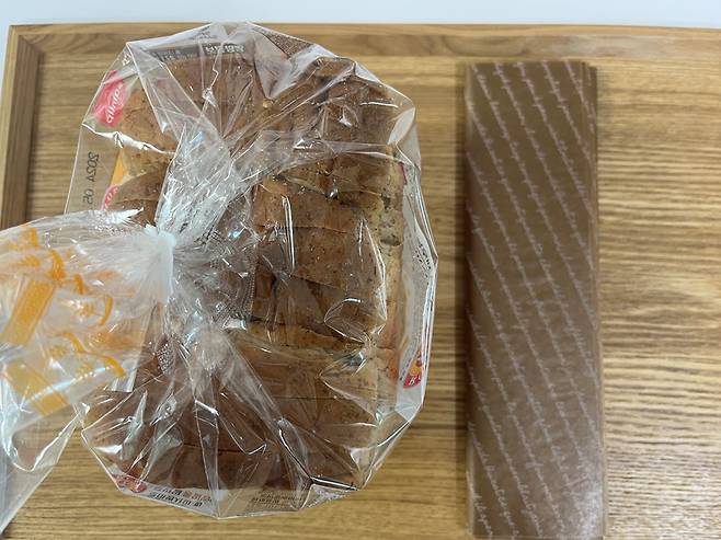 또한 식빵 단면을 유산지로 감싸기 때문에 공기 접촉이나 냉장고 냄새 흡수를 줄일 수 있는 것도 장점입니다.