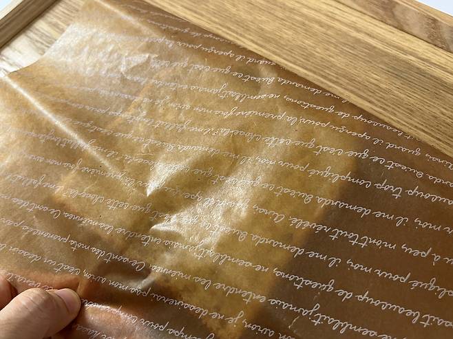 저는 이미 잘려있는 샌드위치용 유산지를 그대로 사용하였습니다. 혹시 사이즈가 큰 유산지나 종이포일을 사용하는 경우, 식빵보다 살짝 넉넉한 사이즈로 잘라서 준비하세요.
