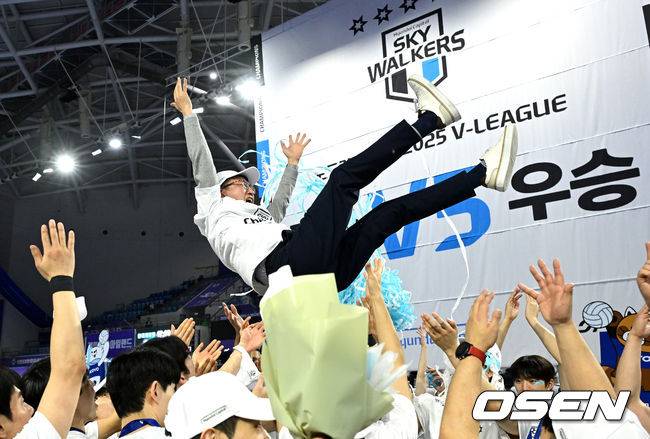 현대캐피탈 이교창 단장이 헹가래를 받 고 있다. 2025.04.05 /sunday@osen.co.kr