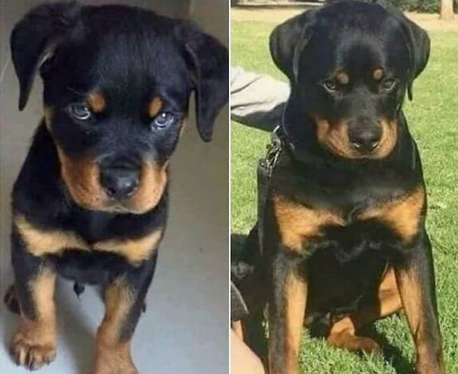 어릴적 모습 그대로인 강아지가 있어 놀라움을 자아내게 합니다.