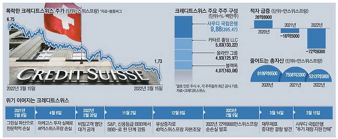 SVB보다 더 큰 쇼크 오나 … 파산위기 CS, 최대주주도 지원 거부