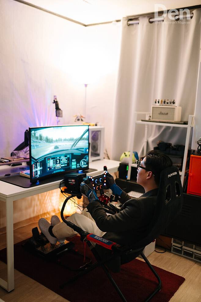 PC와 모니터에 400만원, 심 레이싱 장비에 250만원 정도 투자했다. 제품은 모두 인터넷으로 구매한다. 국내 사이트로는 지티기어(GTGear)를 애용하고, 부속 장비들은 해외 직구를 하기도 한다.