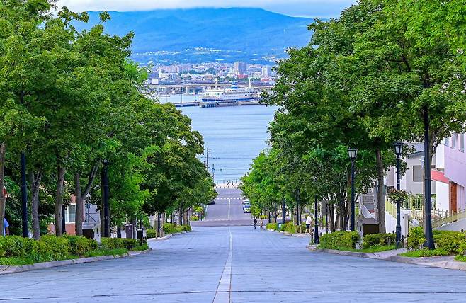 하코다테 항구와 푸른 바다가 한눈에 시원하게 펼쳐지는 하코다테의 하이라이트, 하치만자카 언덕입니다. 하치만자카 언덕은 계절마다 다른 매력이 있지만, 그중에서도 단연 아름다운 계절은 바로 겨울이죠.