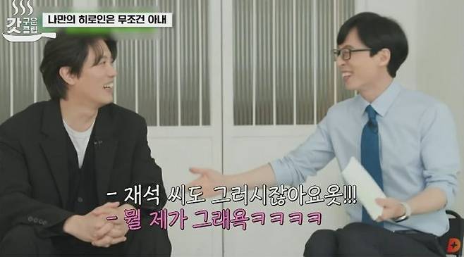 아내에게 자주 하는 말로는 “네”라고 답했고, 자주 듣는 말로는 “‘이거 왜 그랬어’라는 말”이라고 전해 폭소케 했다. 유재석은 “나는 아내에게서 ‘나은이 좀 씻겨줘’라는 말을 자주 듣는다”고 했고, 조세호는 “나는 혼자 살아서 그런 말 들을 사람이 없다. 집에 누가 있으면 귀신”이라고 말해 모두를 폭소케 했다.
