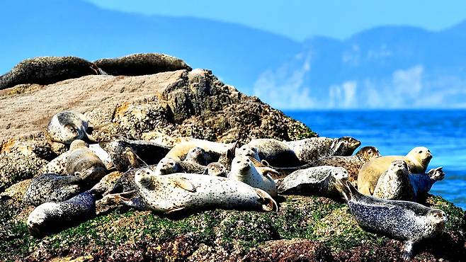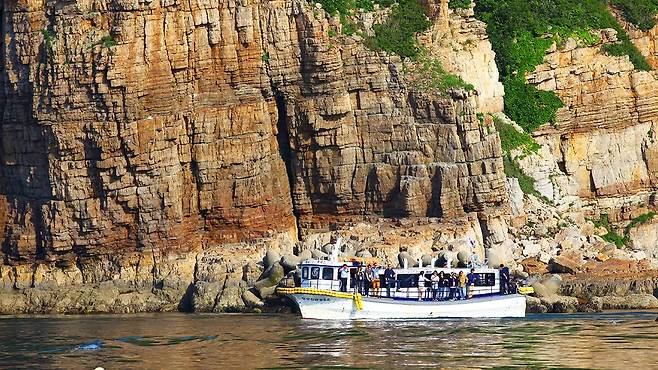 먼저 유람선은 해안 절벽 바로 아래까지 접근하며 거대한 암석의 질감과 규모를 피부로 느끼게 해준다. 운이 좋다면 이곳에 서식하는 ‘점박이물범’을 만나는 행운도! 백령도는 국내 유일의 점박이물범 서식지다.
