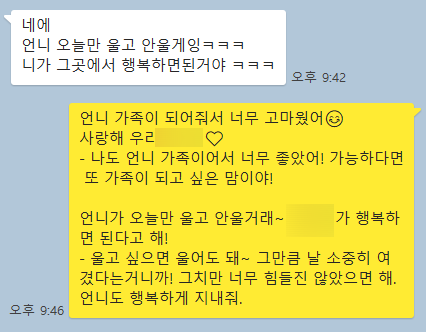 “언니에게 사랑을 많이 받아서 제 마음도 사랑이 넘쳐요”