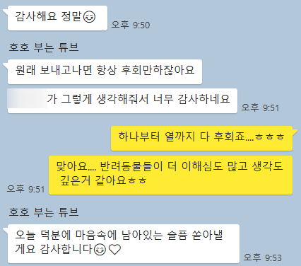 사후교감 덕분에 마음속에 남아있는 슬픔을 쏟아낼 수 있었다는 보호자님.