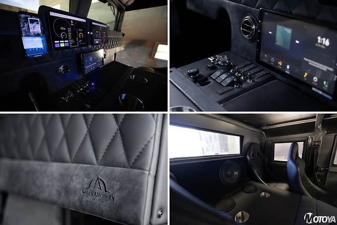 인테리어는 기존의 오리지널 허머 H1의 출고 당시 모습에 가까우면서도 더욱 고급 소재로 마감되어 소유의 즐거움을 만족시킨다. 계기반 및 차량의 장치들을 조작하는 시스템은 현대적인 고해상도 터치스크린 방식의 시스템을 채용하여 편의성을 높였다. 시트의 경우에는 착석감이 좋지 못한 오리지널 허머 H1의 시트를 모두 제거하고, 별도로 제작한 버킷시트를 적용하여 탑승자의 편의성을 배려했다. 스티어링 휠은 이탈리아 모모(momo)사의 스포츠 스티어링 휠을 적용했다.