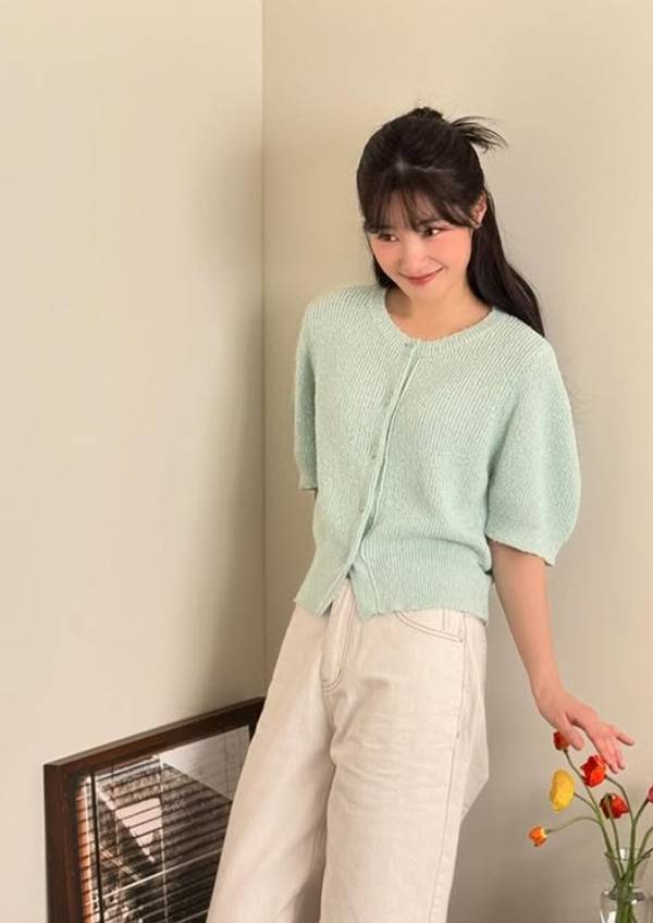 민트 니트에 베이지(또는 화이트) 팬츠를 입거나 베이지 트렌치 코트에 민트색 이너를 매치하는 식으로 코디를 할 수 있어요.