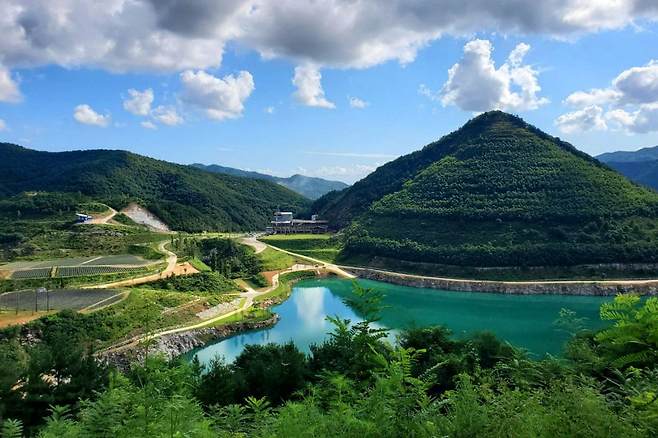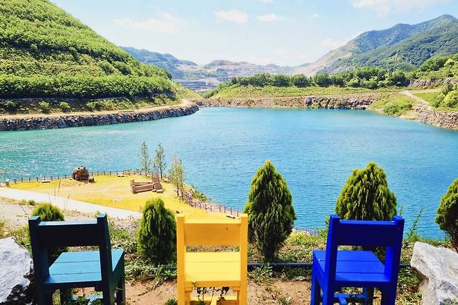 무릉별유천지는 40년 동안 석회석을 캐오던 폐광산을 리모델링해 이국적인 호수와 수려한 자연 정원으로 새롭게 개장한 사진스팟입니다. 자연 경관을 누비며 스릴만점 체험을 할 수 있는 액티비티와 갤러리 전시, 카페까지 운영하는 복합문화공간입니다.